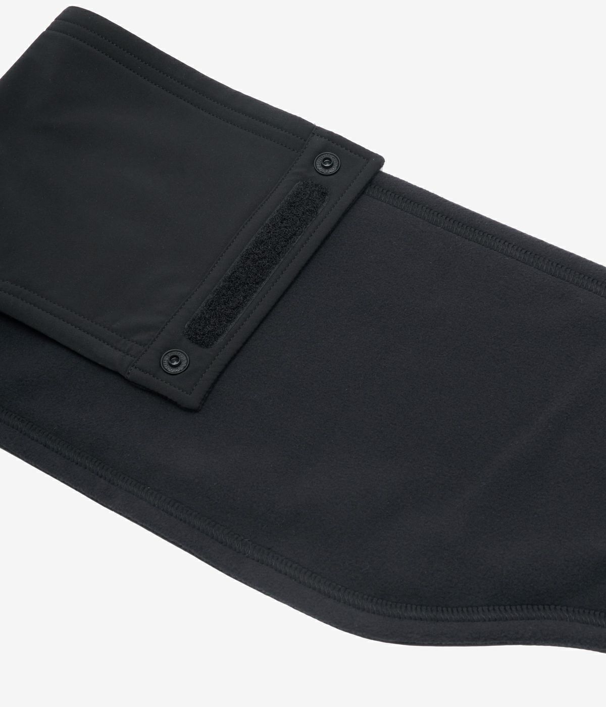 ソフトで肌当たりの良いフリース素材が首元を包み込み、着用時のストレスを軽減します。表面にはすっきりとしたルックスのストレッチ素材を採用し、ゴワつきのないスマートな印象に仕上げました。