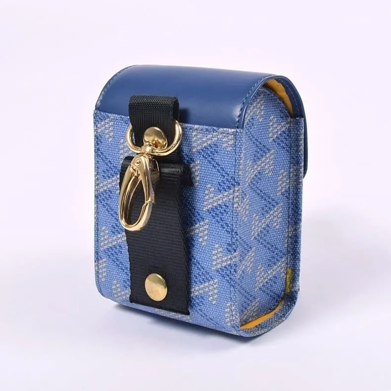 今回はフラップにレザーを採用。幾何学模様の生地とレザーのシンプルな美しさは高級感も兼ね備えています。さらにブランドロゴをゴールドの箔押しで表現しグッと心惹かれる見た目に。