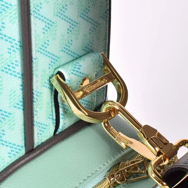 鮮やかでありながらも柔らかさを感じさせるミントトーンに口枠やパイピングには深みのあるチャコールグレーをセレクト。