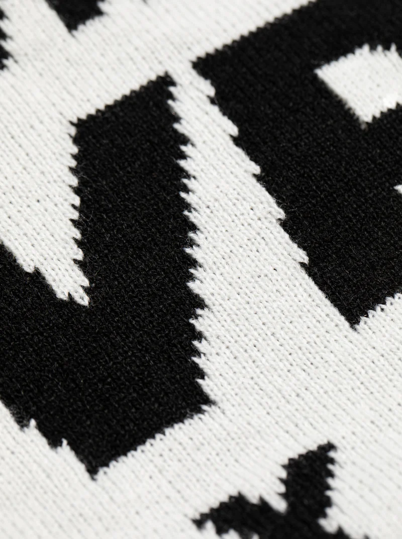 ジャガードで編み込んだブランドロゴは冬のコーディネートの必須アイテム。